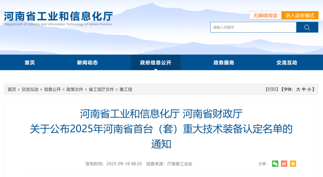近日,河南省工业和信息化厅正式公布2025年首台(套)重大技术装备认定名单,安阳高新区推荐申报的3家企业设备全部成功入选,展现了区域装备制造业的强劲创新实力。